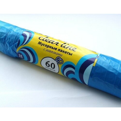 Мусорные мешки 60л/10шт с завязками синие «Clear Line»