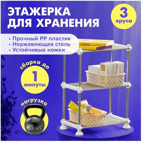 Conflate Home Этажерка складная 3х ярусная РР+ металл 29.5*22*48.5