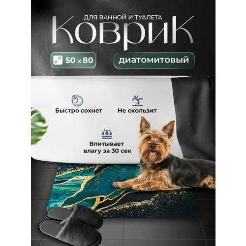Диатомитовый коврик для ванной Conflate, антискользящий 50*80, изумрудно-черный мрамор