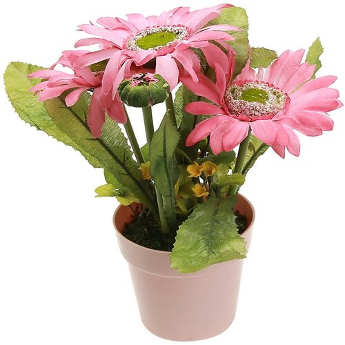 Цветочная композиция "Герберы" 19см, в пластмассовом горшке д8,5см h7,5см, цвета микс (Китай)