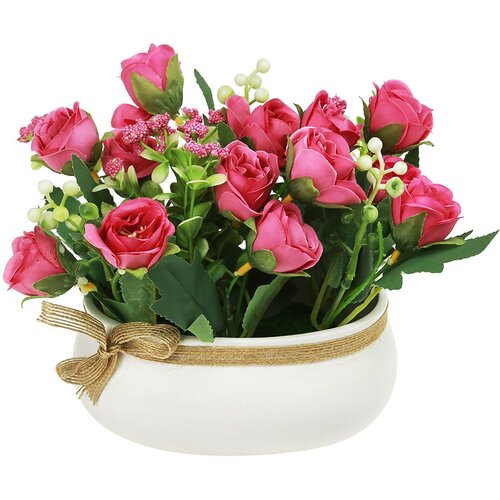 Цветочная композиция "Розы" 16,5см, в керамическом горшочке 15х8,8см h7см, темно-розовый, индивидуальная упаковка (Китай)