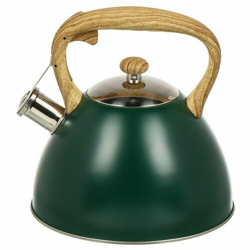 Чайник нержавеющая сталь, 3 л, со свистком, матовый, с силиконовым покрытием под дерево, Daniks, Emerald, индукция, изумрудный, MSY-079E