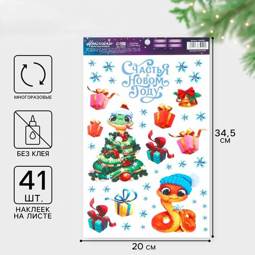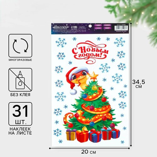 Наклейки новогодние на окна, виниловые «Змея 2025», многоразовые, 20 х 34.5 см, Новый год 4