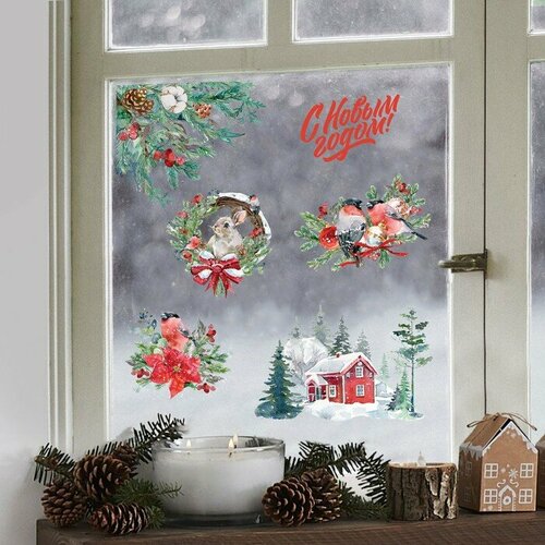 Наклейки для окон «Зимняя компания», 33 × 50 см / Новый год