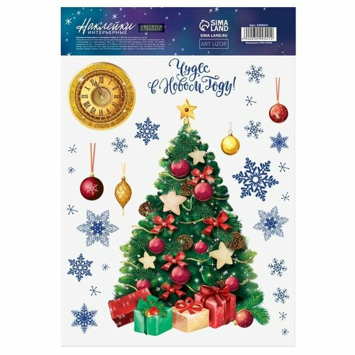 Арт Узор Интерьерная наклейка со светящимся слоем «Чудес в Новом Году», 21 х 29,7 см