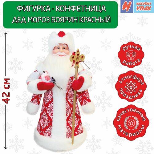 Фигура- конфетница упаковка "НаходкаУпак" Дед Мороз Боярин Красный 42 см