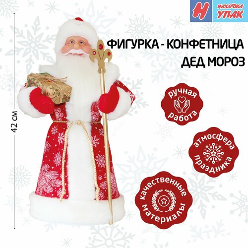 Фигура-конфетница новогодняя "НаходкаУпак" Дед Мороз 42см Красный с посохом