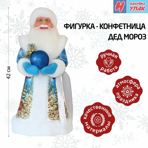 Фигура- конфетница упаковка "НаходкаУпак" Дед Мороз 42см Сказочный В шапке Голубой