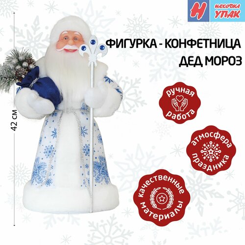 Фигура-конфетница новогодняя "НаходкаУпак" Дед Мороз 42см Белый
