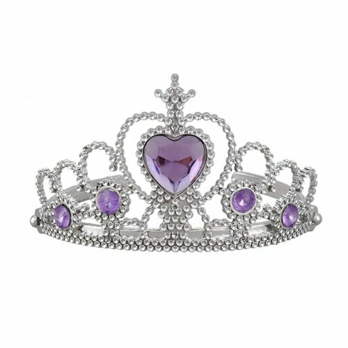Корона пластиковая, Сердце, Серебро/Сиреневый, 16*7,5 см, 1 шт.