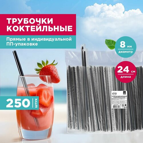 Трубочки для коктейлей прямые, чёрные - 8 x 240 мм в инд. п/п упаковке, AVIORA (401-294)