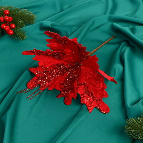 Декор "Зимний цветок" напыление блеск, 24х20 см, красный