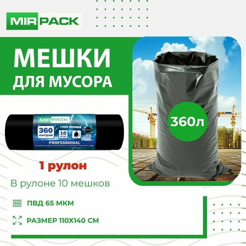 "PROFESSIONAL" 360 литров, 10 штук, ПВД, 65 мкм, размер 110*140 см, черные, 1рулон