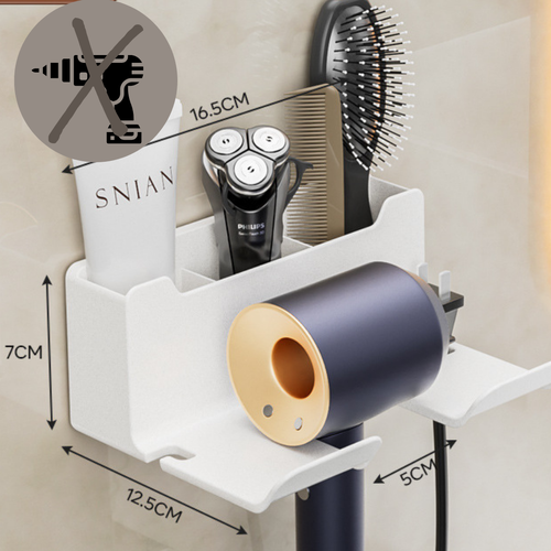 Держатель для фена в ванную настенный самоклеящийся с органайзером, HomeSun