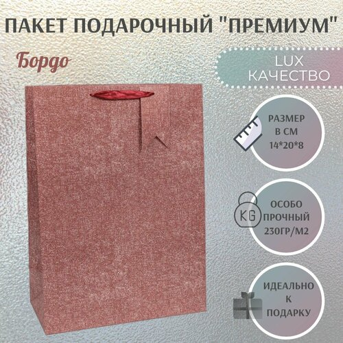 Особопрочный подарочный пакет с ручками 14х20х8 см. "Премиум - Бордо"