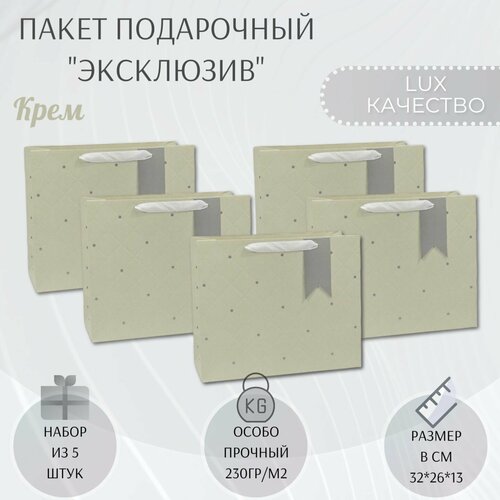 Набор подарочных пакетов с ручками 32х26х13 см. "Эксклюзив - Крем" 5 шт.