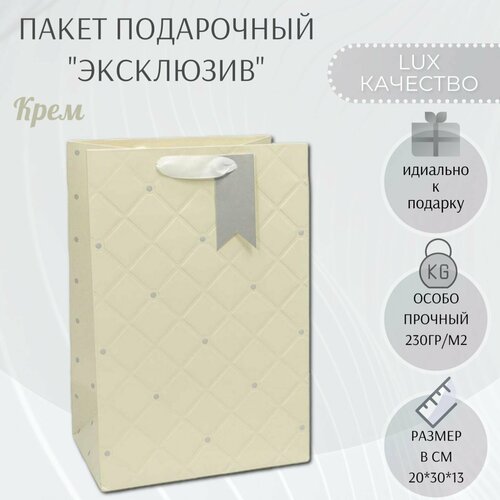 Подарочный пакет с ручками 20х30х13 см. "Эксклюзив - Крем"