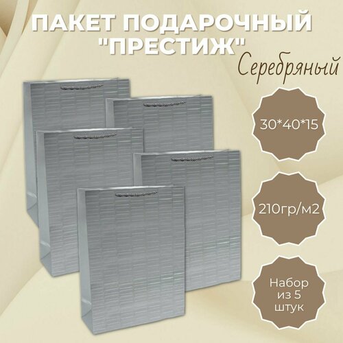 Набор бумажных подарочных пакетов 30х40х15 см. "Престиж - Серебряный". Плотность - 210г/м2
