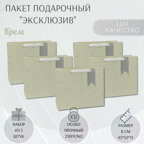 Набор бумажных подарочных пакетов 45х32х15 см. "Эксклюзив - Крем" 5 шт.