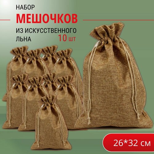 Набор мешочков подарочных 26х32 см / для хранения / иск. лён - 10 шт