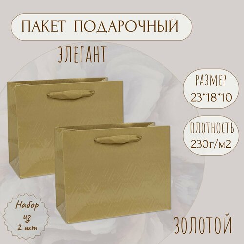 Пакет подарочный бумажный с ручками 23х18х10 "Элегант - Золотой". Плотность 230г./м2. (2 шт.)