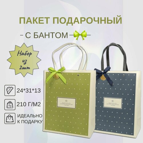 Пакет подарочный бумажный с бантом 24х31х13 см. (2 шт.) / Высокая плотность 210г/м2.