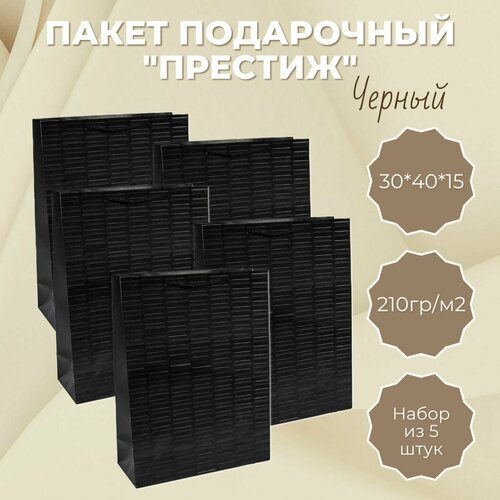 Набор бумажных подарочных пакетов 30х40х15 см. "Престиж - Чёрный". Плотность - 210г/м2