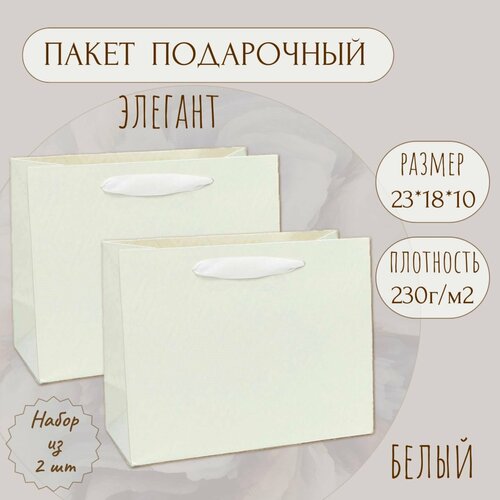 Пакет подарочный бумажный с ручками 23х18х10 "Элегант - Белый". Плотность 230г./м2. (2 шт.)