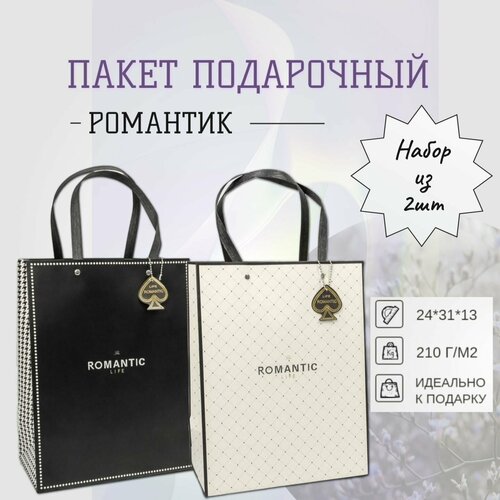 Пакет подарочный бумажный "Романтик" 24х31х13 см. (2 шт.) / Плотность 210г/м2.