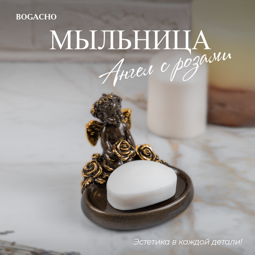 Мыльница из мрамора Bogacho Ангел с розами коричневая ручная работа