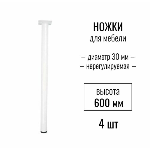 Ножки для мебели, ножка опора круглая диаметр 30 мм, нерегулируемая, высота 600 мм, комплект 4 шт