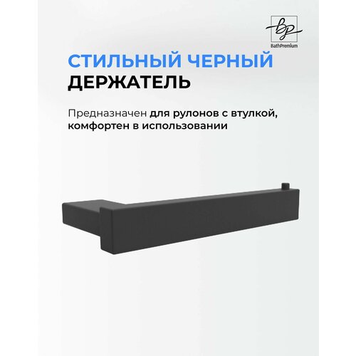 Premium премиум класса. Подвесной держатель для туалетной бумаги изготовлен из качественной нержавеющей стали. Черное матовое покрытие высокого качества защищает изделие от коррозии и продлевает эксплуатационный срок. Набор для крепления к стене в комплекте, тип монтажа: скрытый. Монтируется на стену при помощи саморезов. Держатель выполнен в виде штанги с ограничителем на конце, предотвращающим падение бумаги во время использования. Такая конструкция прочно удерживает рулон туалетной бумаги. Стильный навесной бумагодержатель для туалета изготовлен из прочного металлического сплава, покрытого инновационным напылением, которое защищает металл от внешнего воздействия. Материалы изготовления устойчивы к влажности, механическим повреждениям, истиранию, плесени и вспучиванию покрытия. Модель предназначена для рулонов с широкой втулкой. Не имеет острых углов и заусениц, что повышает безопасность пользования. Строгий и лаконичный вид держателя с