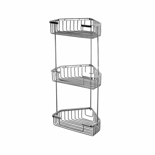 Полка-корзина в ванную угловая Frap F335-2, 3-х ярусная, металл, комплект 2 шт, хром