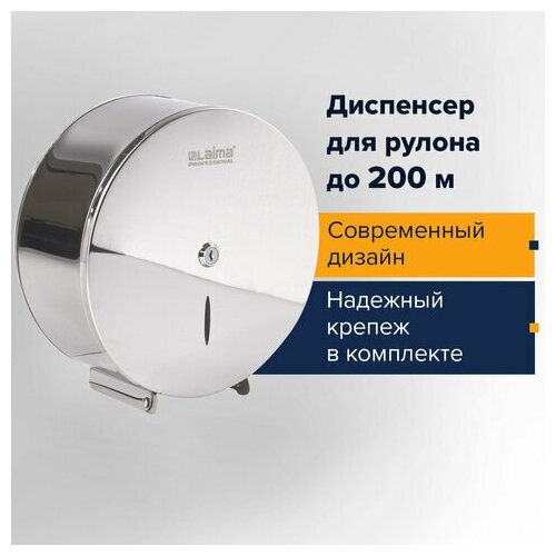 Диспенсер для туалетной бумаги LAIMA PROFESSIONAL INOX, комплект 3 шт, (Система T2) малый, нержавеющая сталь, зеркальный, 605699