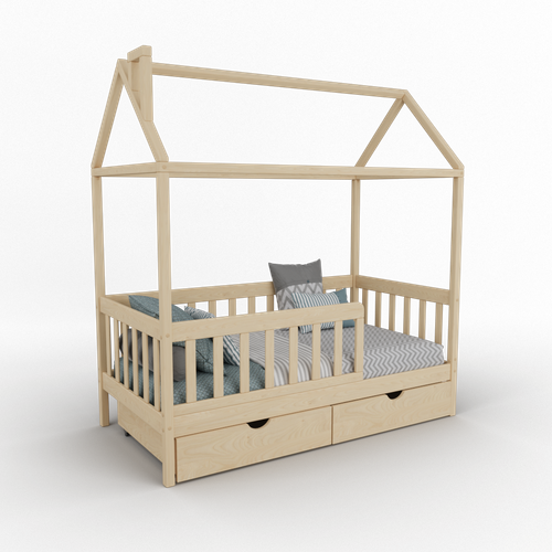Кровать детская Mi-Gusta Verdi, 180x80 см, из массива березы, без покраски, кровать-домик