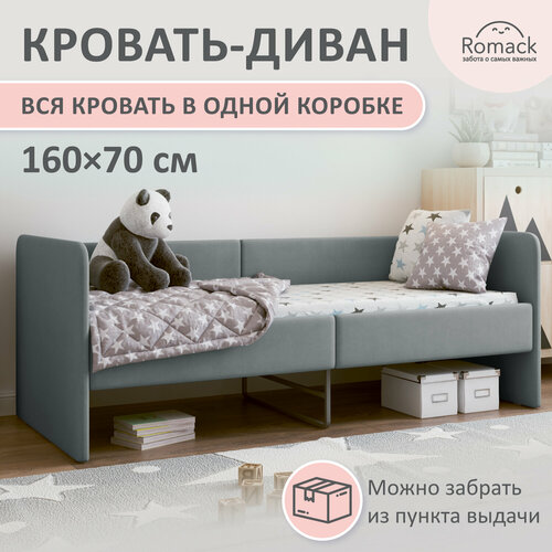 Кровать детская Romack Donny 160х70 с ортопедическим основанием, мягким изголовьем, рогожка грей