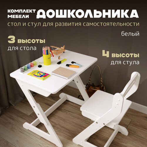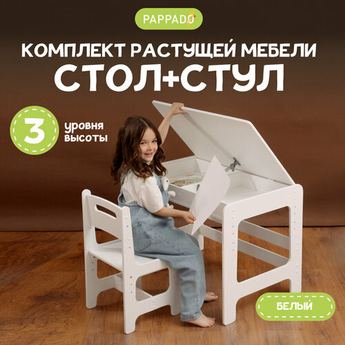Комплект растущей мебели стол и стул "Для самых маленьких" белый PAPPADO