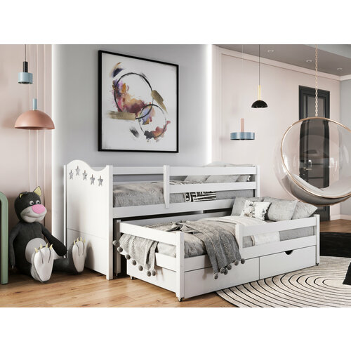 Детская двухъярусная кровать Mi-Gusta Star, с выдвижным спальным местом, 160х80/180х80 см, из массива берёзы, белая