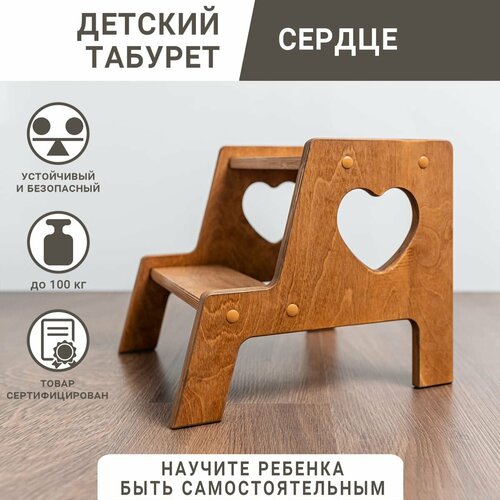 Детский деревянный табурет Сердце, цвет темно-коричневый