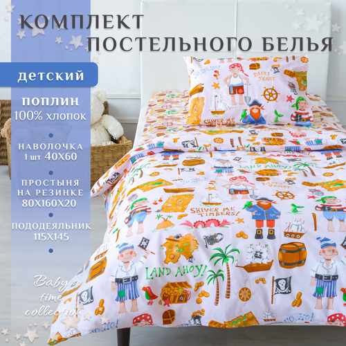 Детский комплект постельного белья с простыней на резинке Lime Time Поплин, Детский 160х80