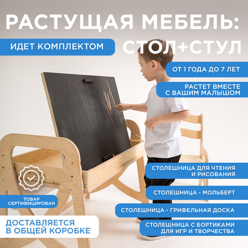 Растущий детский стол с грифельной доской и мольбертом