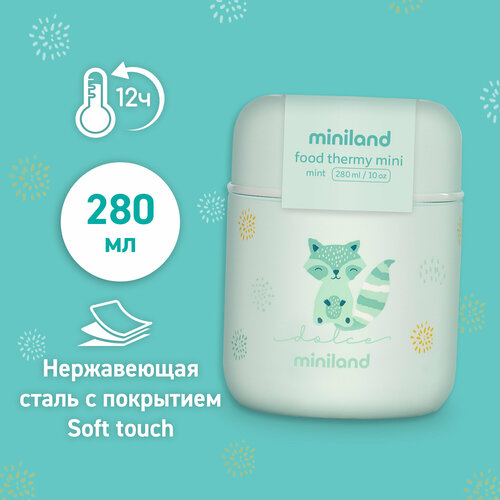 Детский термос для еды и жидкостей Miniland Thermy Dolce Mini 280 мл, бирюзовый/енот