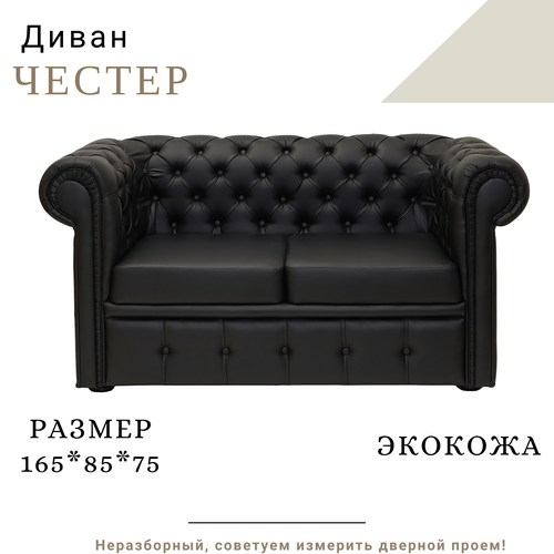 Прямой диван Честер, 2-х местный, нераскладной, экокожа PG BLACK