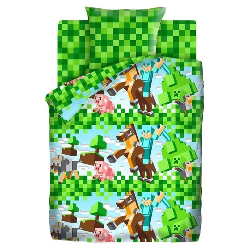 Постельное белье детское 1.5 спальное / комплект постельного белья 1.5 спальный бязь Juno 1 наволочка - 70х70 Майнкрафт