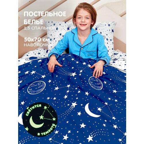 Комплект постельного белья / постельное белье 1.5 поплин "Juno" Neon (50х70) рис. 16416-1/16416-2 Космос