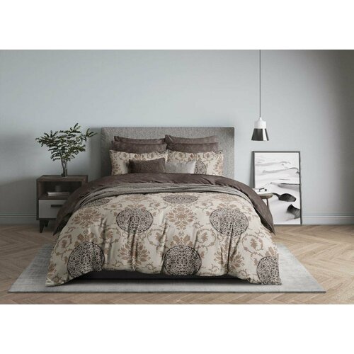 Сатин ЗефирТекс Постельное белье Rafinatto, сатин, цветы, коричневый (2 спальный Макси с нав. 70х70 см,)