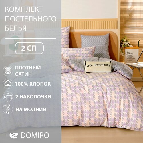 Постельное белье DOMIRO сатин 100% хлопок, комплект 2 спальный на молнии, наволочка 50х70, 70х70 см