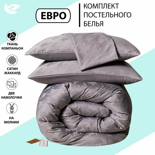 Постельное белье однотонное сатин жаккард хлопок, комплект Евро на молнии, наволочки 70х70