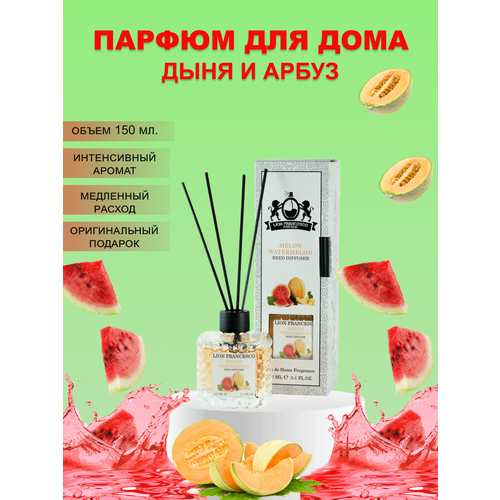 Ароматический диффузор LION FRANCESCO с палочками 4 шт / Аромадиффузор/ Дыня и Арбуз