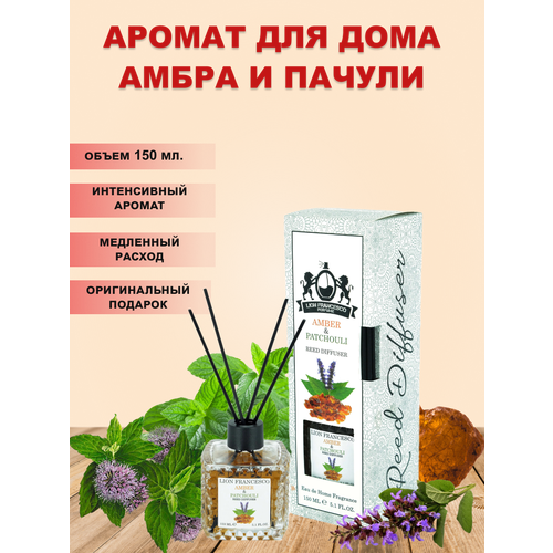 Диффузор ароматический / Ароматизатор для дома / ароматический диффузор lion francesco Reed Diffuser Amber & Patchouli